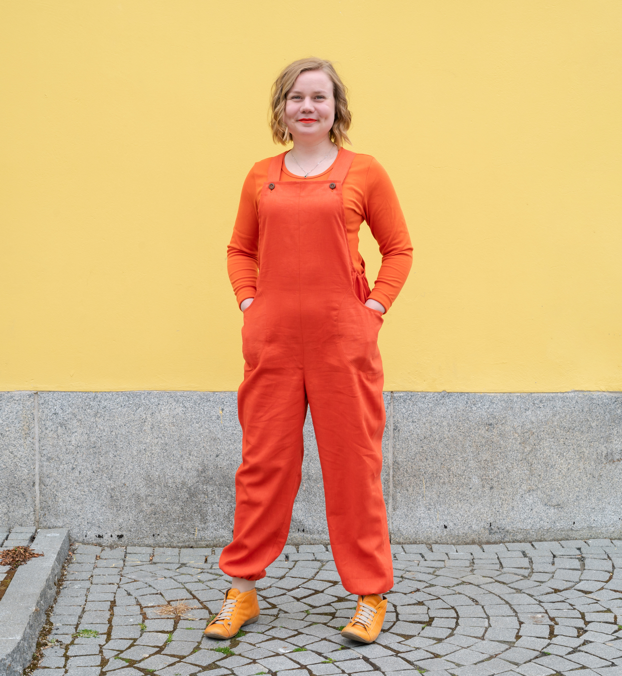 Tämä hauska lappuhaalari on joka paikan vaate! Haalari on ihanan helppo arjessa ja vapaa-ajalla, vaikkapa puutarhassa puuhaillessa. Materiaalit ovat pehmeät pellava ja rami, jotka eivät hiosta arjen touhujen tuoksinassa!